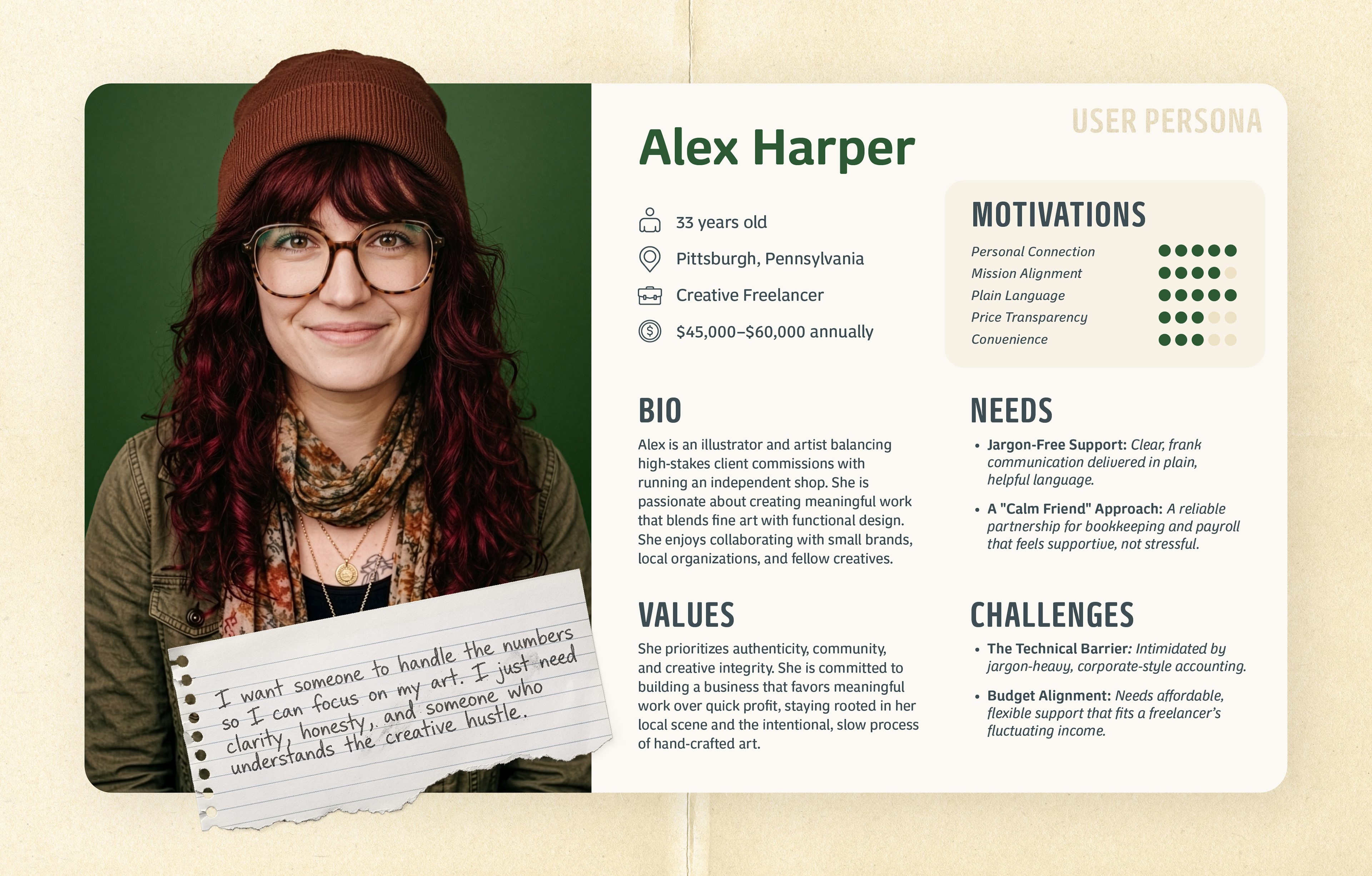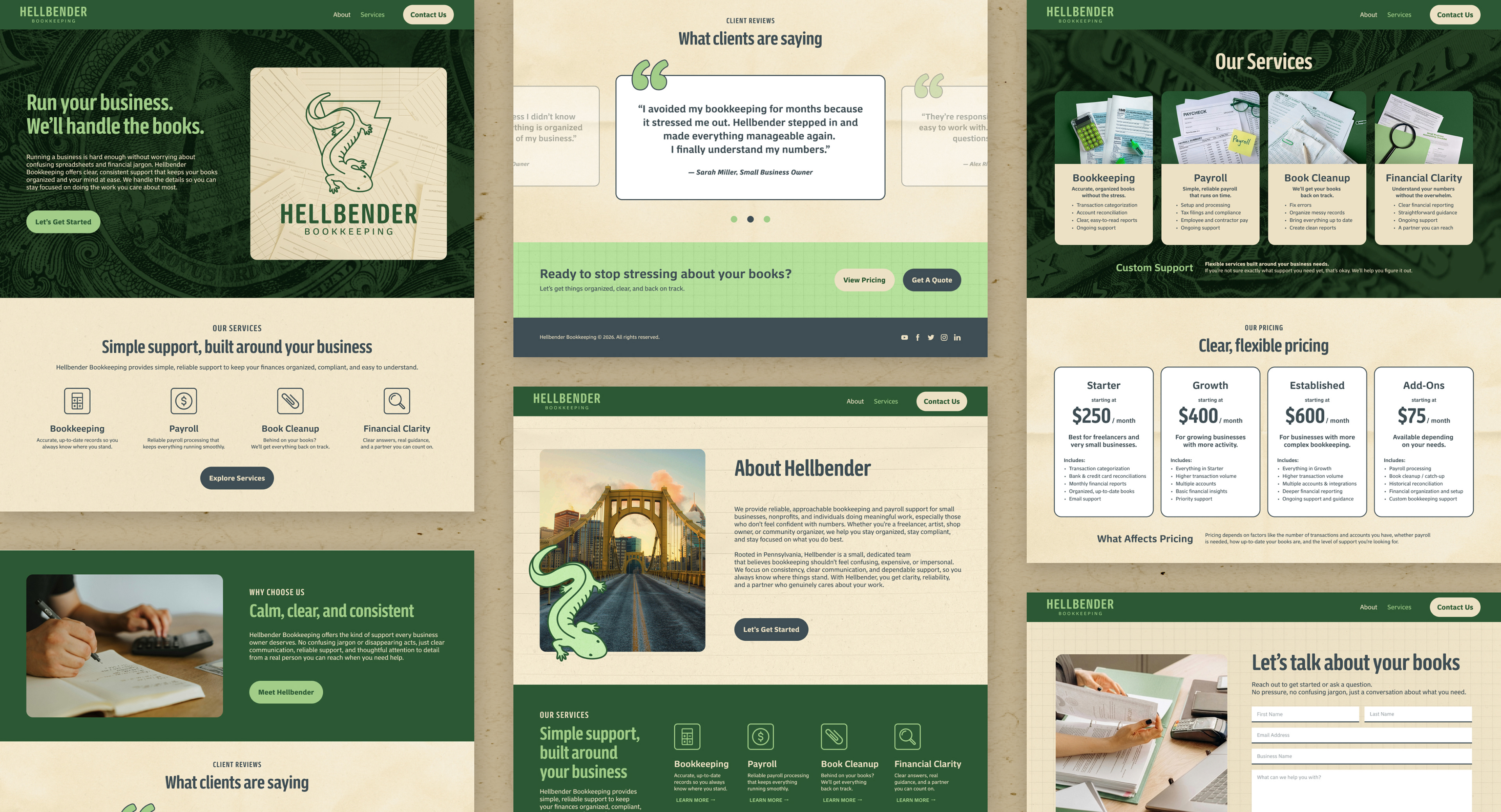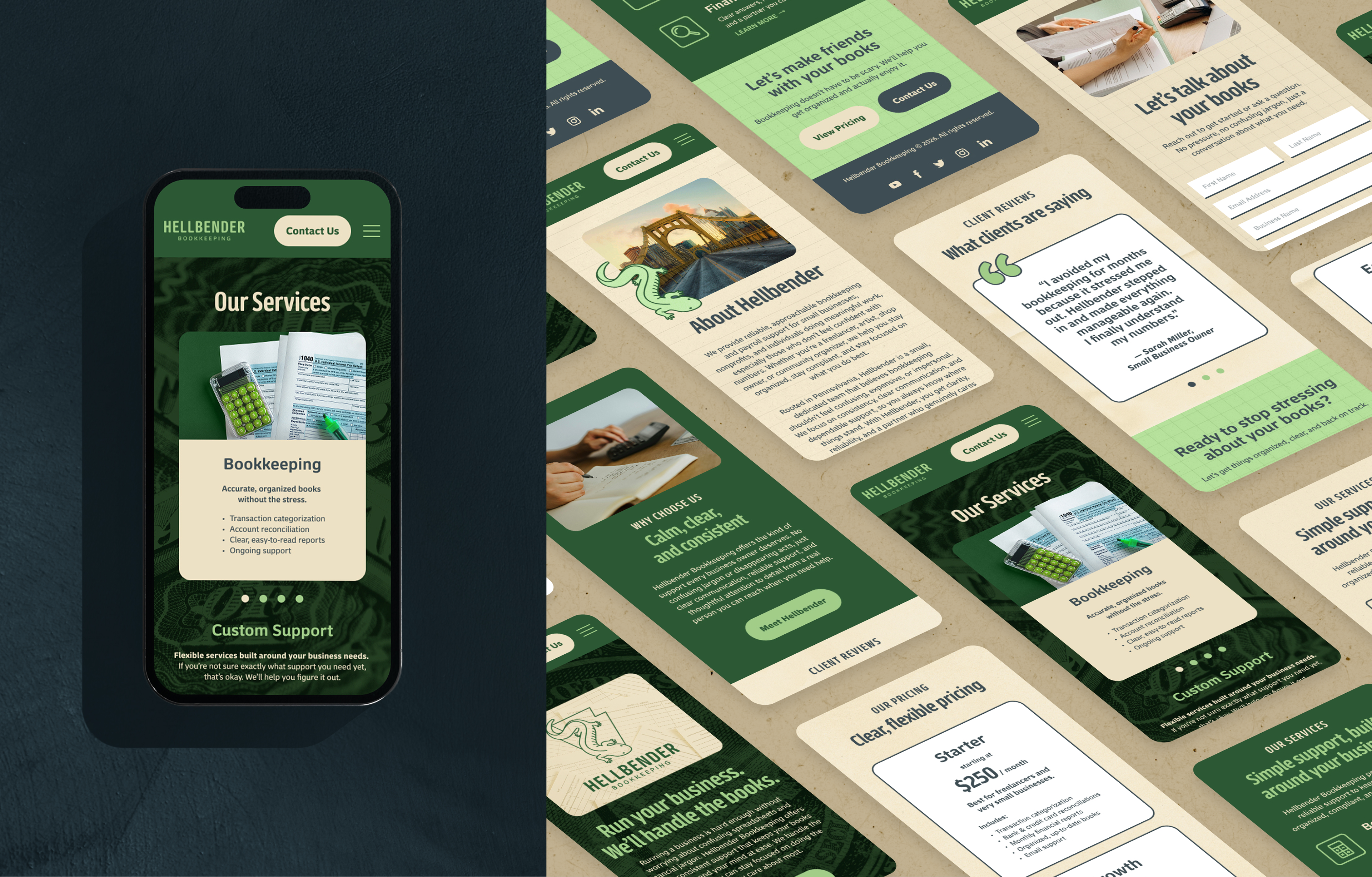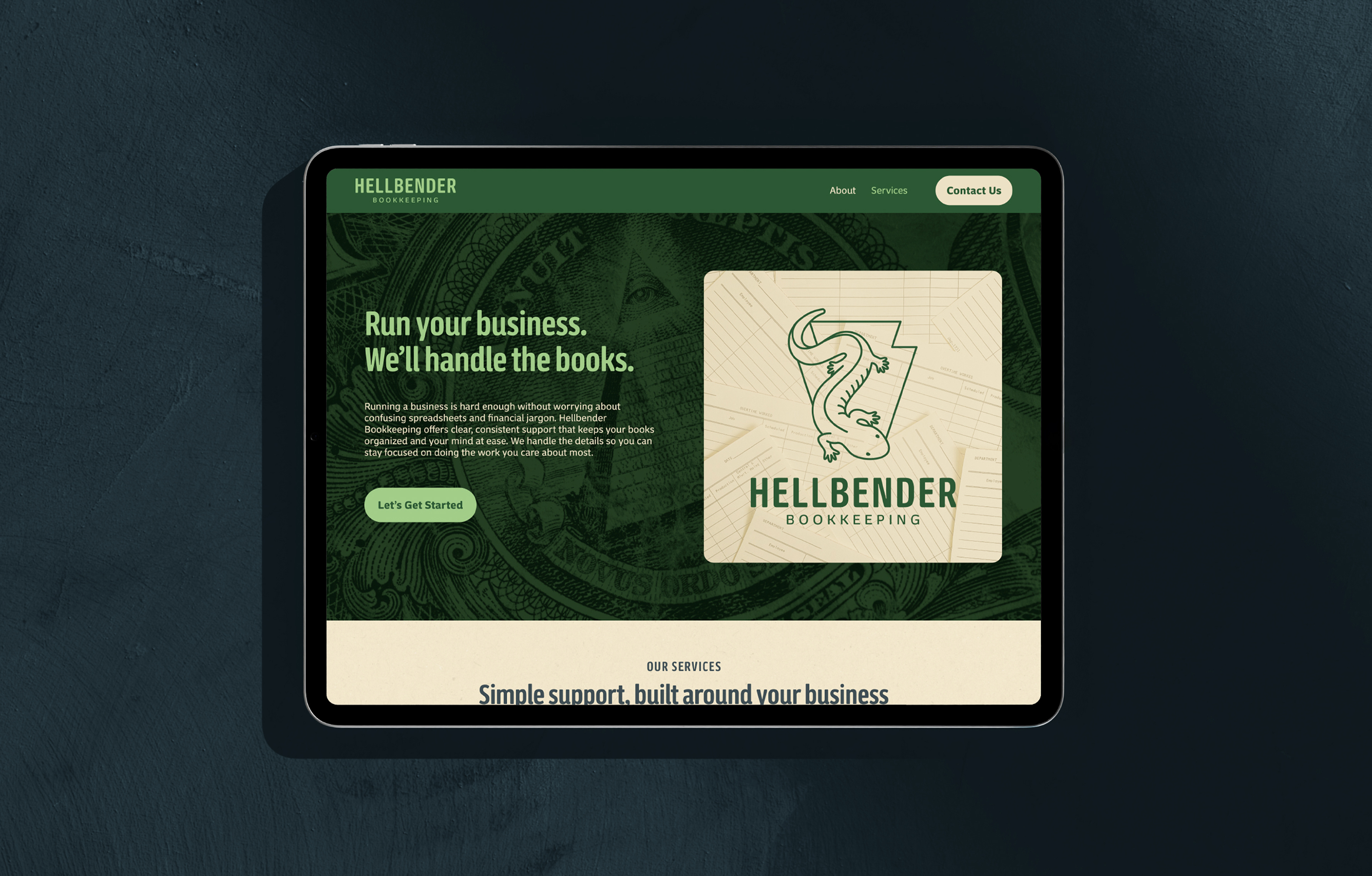 Hellbender Bookkeeping is a Pennsylvania-based bookkeeping and payroll service supporting small businesses, non-profits, and creative professionals. For this project, I developed a complete brand identity that makes financial services feel trustworthy and professional while remaining approachable for clients who may feel overwhelmed by numbers.